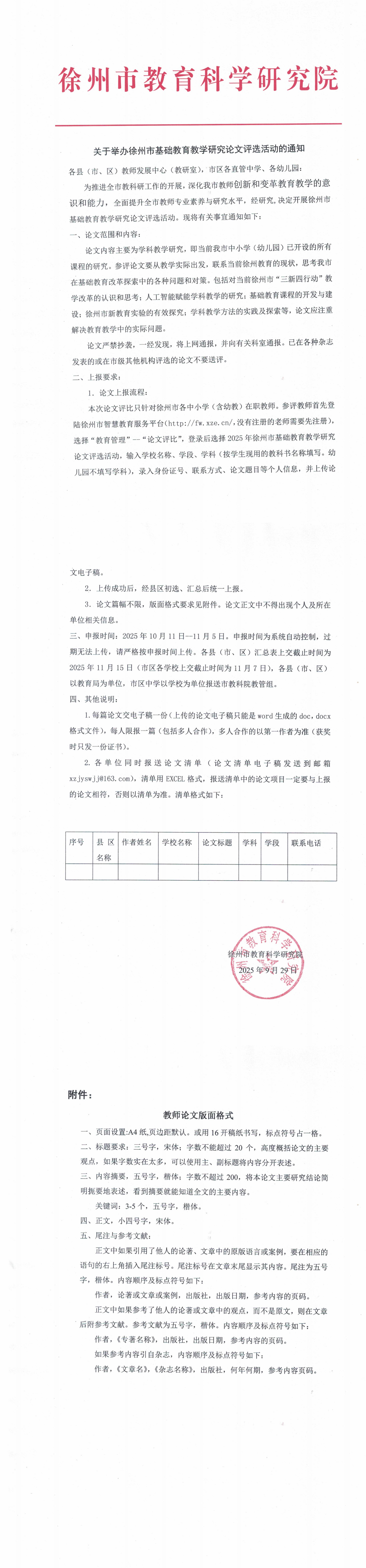 上一篇: 江苏省教育学会关于组织2025年度征文活动通知(全)